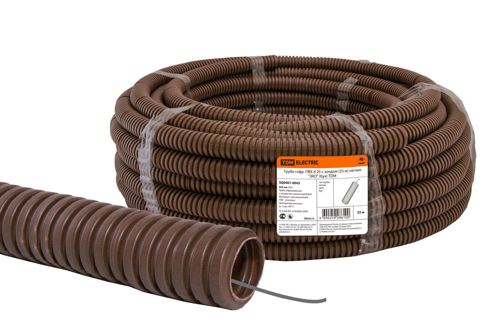 Гофротруба ПВХ Ø25 с зондом (25 м) легкая "ЭКО" (бук) TDM TDM Electric Артикул: SQ0401-0043