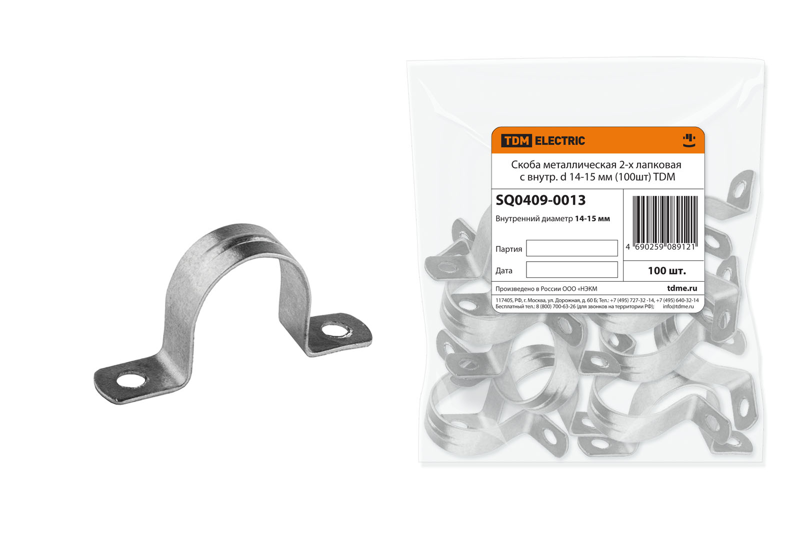 Скоба металлическая 2-х лапковая с внутр. ø 14-15 мм (100 шт) TDM TDM Electric Артикул: SQ0409-0013